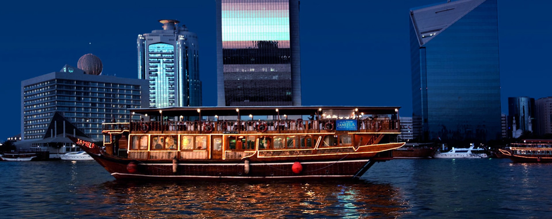If you’re looking for something more relaxing, cruise down the gentle waters of the Dubai creek with the skyline twinkling in the distance on a traditional Dhow bobbing along the waves. Allow our chefs to serve you some of the finest delicacies as the musicians put you in a trance with traditional Arabian music. If a romantic retreat is what you’re looking for, this is what you need.